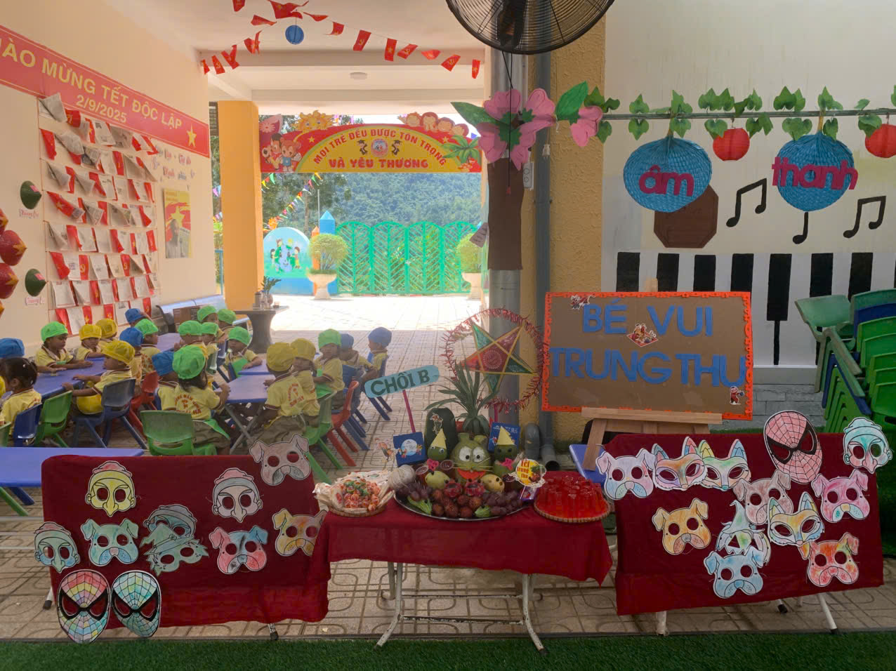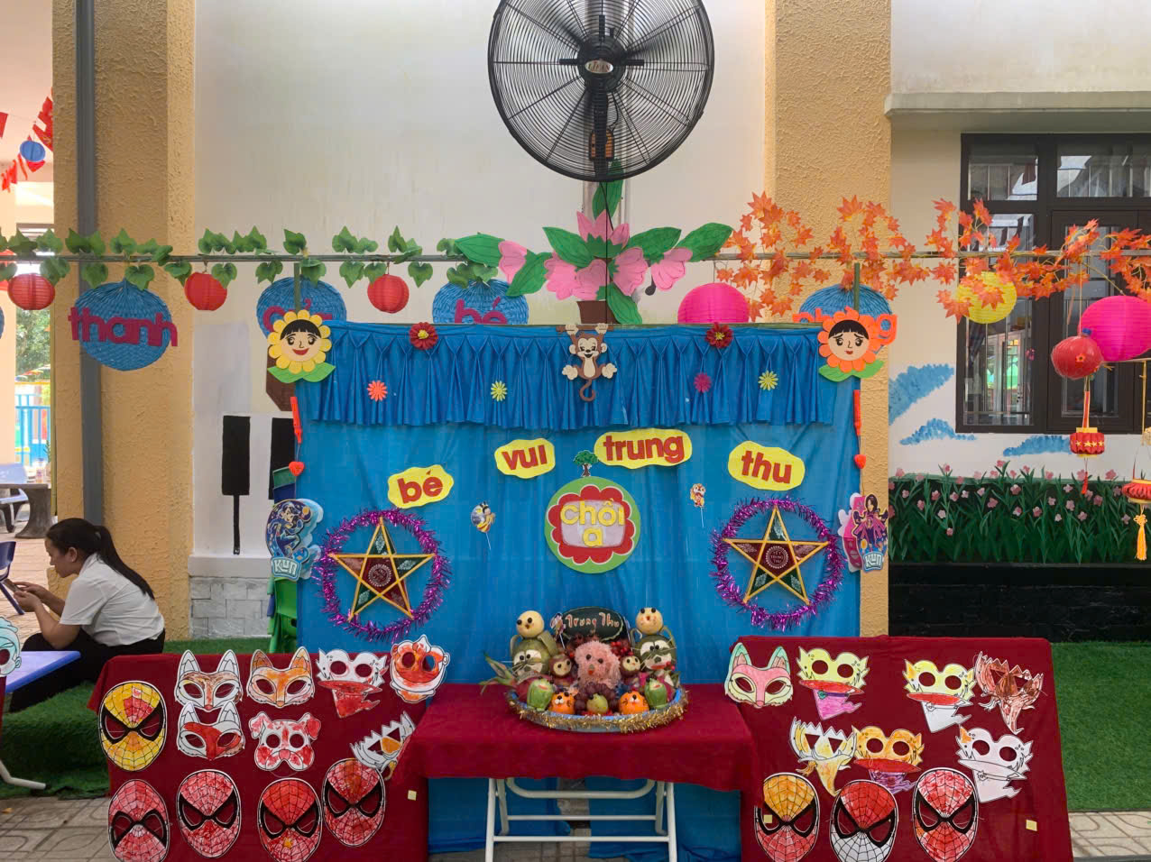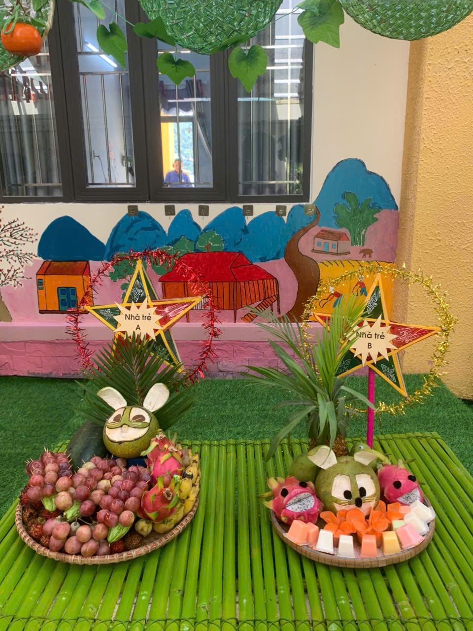 Các lớp cùng nhau thi trưng bày mâm cỗ Trung thu đẹp mắt, sáng tạo và đầy ý nghĩa. trưng bày sản phẩm tự các con làm; trưng bày mâm ngũ quả thành các gian hàng như Chồi A, Chồi B, Lá A, Lá B, mầm , nhà trẻ A, nhà trẻ B đều được trang trí rực rỡ, sinh động với chủ đề Vui hội trăng rằm -Trung thu nhớ Bác.